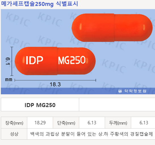 ๋ชจ์: ์ฃผํฉ์ ์บก์ / ์๋ณํ์: IDP MG250