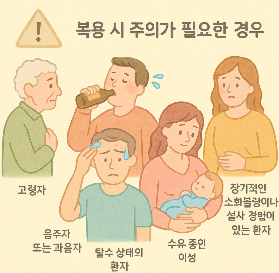 ๐ก ์ฆ์์ด ๋ํ๋ ๊ฒฝ์ฐ ์ฆ์ ๋ณต์ฉ์ ์ค๋จํ๊ณ ์์ฌ์ ์๋ดํด์ผ ํฉ๋๋ค.
