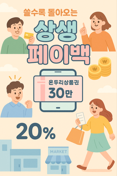 μƒμƒνŽ˜μ΄λ°±μ€ 2025λ…„ 9μ›”λΆ€ν„° 11μ›”κΉŒμ§€ μ‹œν–‰λ˜λŠ” 민생 μ†ŒλΉ„μ§€μ› μ •μ±…μœΌλ‘œ, μ§€λ‚œν•΄ μΉ΄λ“œ μ‚¬μš©μ•‘λ³΄λ‹€ μ†ŒλΉ„κ°€ λŠ˜μ–΄λ‚œ 경우 μ¦κ°€λΆ„μ˜ 20%λ₯Ό λ””μ§€ν„Έ μ˜¨λˆ„λ¦¬μƒν’ˆκΆŒμœΌλ‘œ ν™˜κΈ‰ν•΄μ£ΌλŠ” μ œλ„μž…λ‹ˆλ‹€.