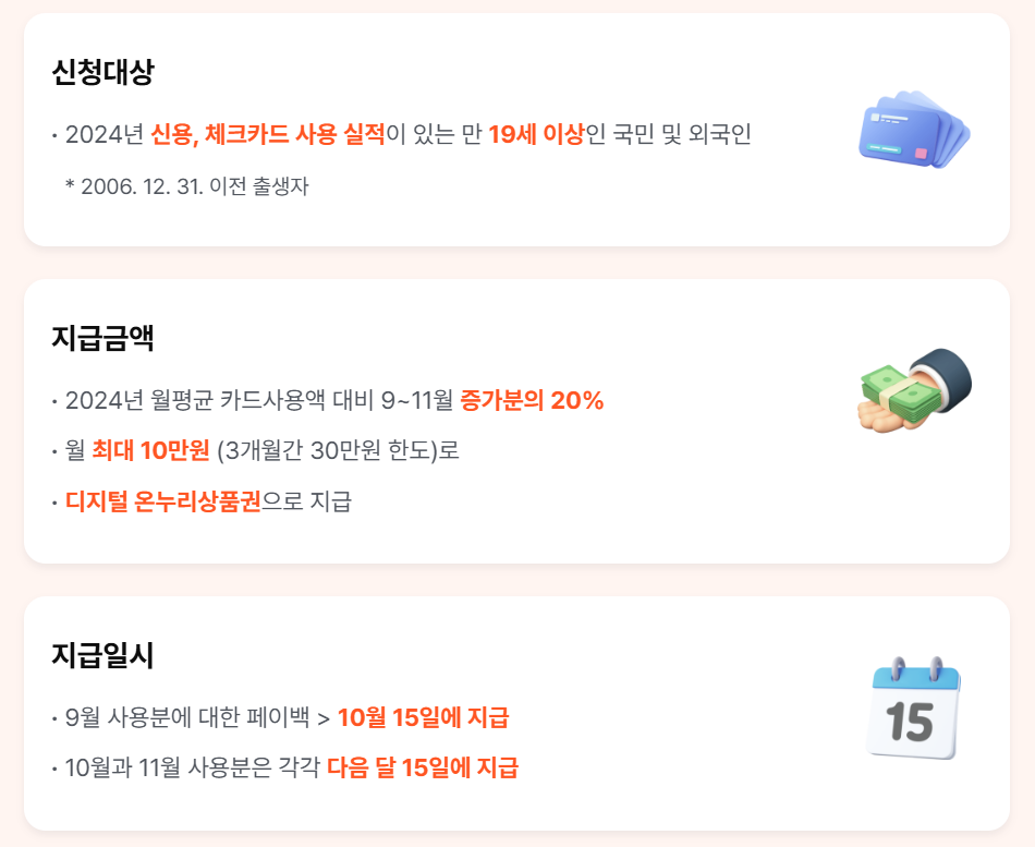 μμνμ΄λ°±μ 2025λ 9μλΆν° 11μκΉμ§ μνλλ λ―Όμ μλΉμ§μ μ μ± μΌλ‘, μ§λν΄ μΉ΄λ μ¬μ©μ‘λ³΄λ€ μλΉκ° λμ΄λ κ²½μ° μ¦κ°λΆμ 20%λ₯Ό λμ§νΈ μ¨λ리μνκΆμΌλ‘ νκΈν΄μ£Όλ μ λμ λλ€.