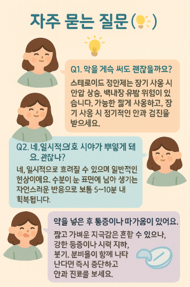 - ๐ ์น๋ฃ ์ค ์ฝํํธ๋ ์ฆ๋ ๊ฐ๊ธ์ ํผํ๊ณ , ๊ผญ ๊ปด์ผ ํ๋ค๋ฉด ์ฝ ๋ฃ๊ธฐ ์ ๋ ์ฆ ์ ๊ฑฐ → ์ฝ ๋ฃ์ ํ 30๋ถ ํ ์ฌ์ฐฉ์ฉํ์ธ์.