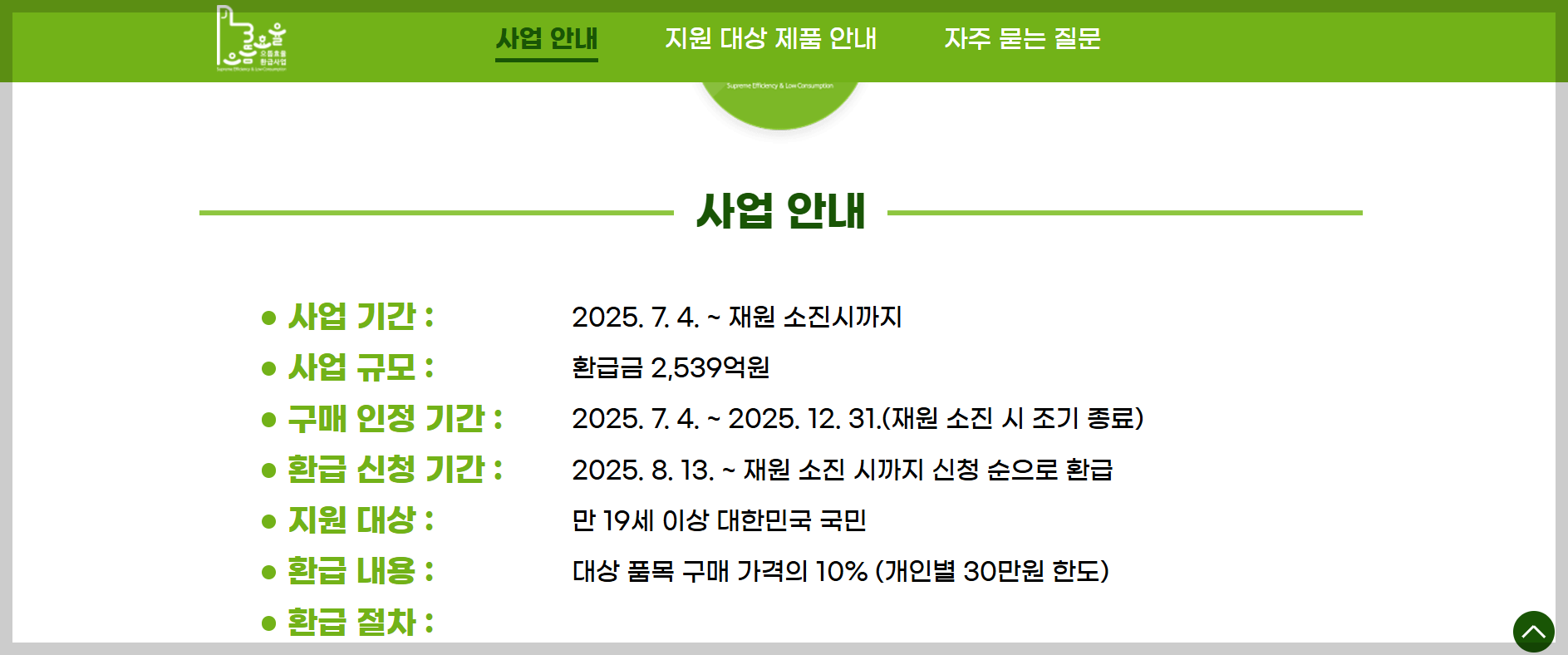 - ์ ํ ์กฐ๊ฑด: ‘์ผ๋ธํจ์จ’ ๋ผ๋ฒจ ๋ถ์ฐฉ๋ ๊ฐ์ (๋์ฅ๊ณ , ์ธํ๊ธฐ, ์์ด์ปจ ๋ฑ)