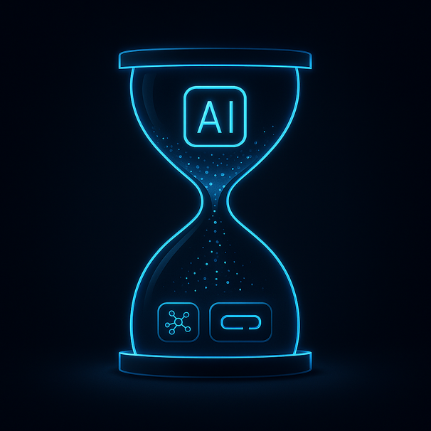 ์ž‘์€ ๊ธ€๋กœ์šฐ ์•„์ด์ฝ˜ ์ด ๋ฐฐ์น˜๋˜์–ด ์ธ๊ณต์ง€๋Šฅ ์ž‘์—… ํ๋ฆ„ ๊ณผ ์‹œ๊ฐ„ ์ œ์•ฝ ์„ ๋™์‹œ์— ์•”์‹œ