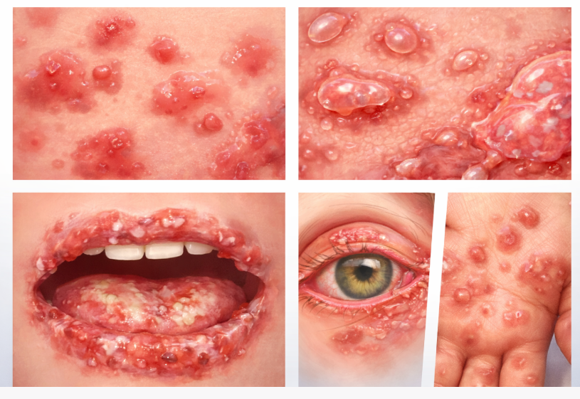 ์ ์ํํ ์ ์๋ ์ฌ๊ฐํ ํผ๋ถ ๋ฐ ์ ๋ง ๋ฐ์์ผ๋ก, ์ฃผ๋ก ์ฝ๋ฌผ์ ์ํด ์ ๋ฐ๋ฉ๋๋ค.