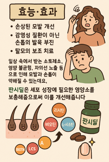νμλ(Pansidil)μ μ½μ©ν¨λͺ¨μ μΌλΌν΄ 볡ν©μ λ‘ κ΅¬μ±λ μ νμΌλ‘, λͺ¨λ°κ³Ό μν±μ μ¬μμ λλ 보쑰 μΉλ£μ μ λλ€.