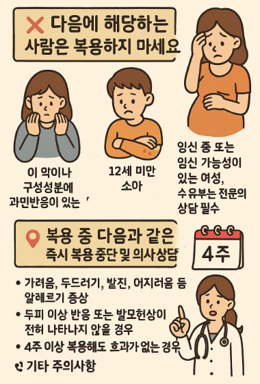 μ€λ³΅ μ±λΆμ΄λ μνΈμμ©μ΄ μλ κ²½μ°κ° μμΌλ, μ½μ¬ μλ΄ ν λ³μ© 볡μ©μ κΆμ₯ν©λλ€.