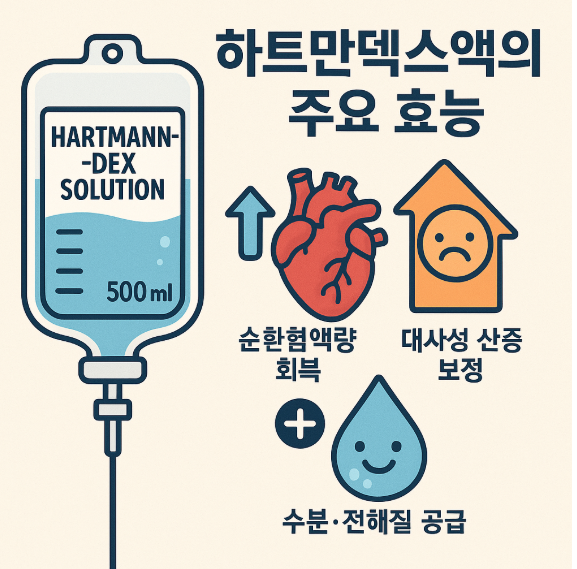 ํํธ๋ง๋ฑ์ค์ก(Hartmandex Solution)์ ์ ํด์ง, ์ ์ฐ(Lactate), ํฌ๋๋น ๋ฑ์ด ํฌํจ๋ ์ ๋งฅ ์์ก์ ๋ก, ์ฒด์ก ๋ถ๊ท ํ, ์ฐ-์ผ๊ธฐ ์ด์, ์ ํด์ง ๊ฒฐํ, ์๊ธ์ํฉ ๋ฑ ๋ค์ํ ์์ ์ํฉ์์ ํ์ฉ๋ฉ๋๋ค.