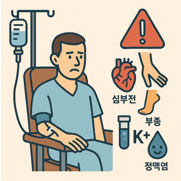 ๊ณผ๋ค ํฌ์ฌ ์ ๋ถ์ข , ํ๋ถ์ข , ์ธํ์ฑ ์ฌ๋ถ์ ๋ฐ์ ๊ฐ๋ฅ → ์ฒด์ค·์๋ณ๋·ํ์ ๋ชจ๋ํฐ๋ง ํ์