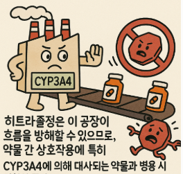 ํžˆํŠธ๋ผ์กธ์ •์˜ ์ฃผ์„ฑ๋ถ„์ธ ์ดํŠธ๋ผ์ฝ”๋‚˜์กธ์€ ์ด CYP3A4 ํšจ์†Œ์— ์˜ํ•ด ๋ถ„ํ•ด๋ผ์š”.